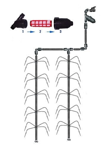 Šiltnamio laistymo sistema KETURKOJIS gravitacinis