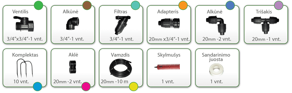 Tai naujas, iš karto tinkamas naudoti lašelinės drėkinimo sistemos rinkinys, kuris suteikia galimybę tolygiai paskirstyti vandenį bei maistingąsias medžiagas prie kiekvieno augalo šaknų. Taip didėja ir augalų kokybė ir jų derlius. Rinkinį paprasta įdiegti, naudoti ir prižiūrėti jokių specialių įgūdžių laistymo sistemų srityje neturinčiam žmogui.