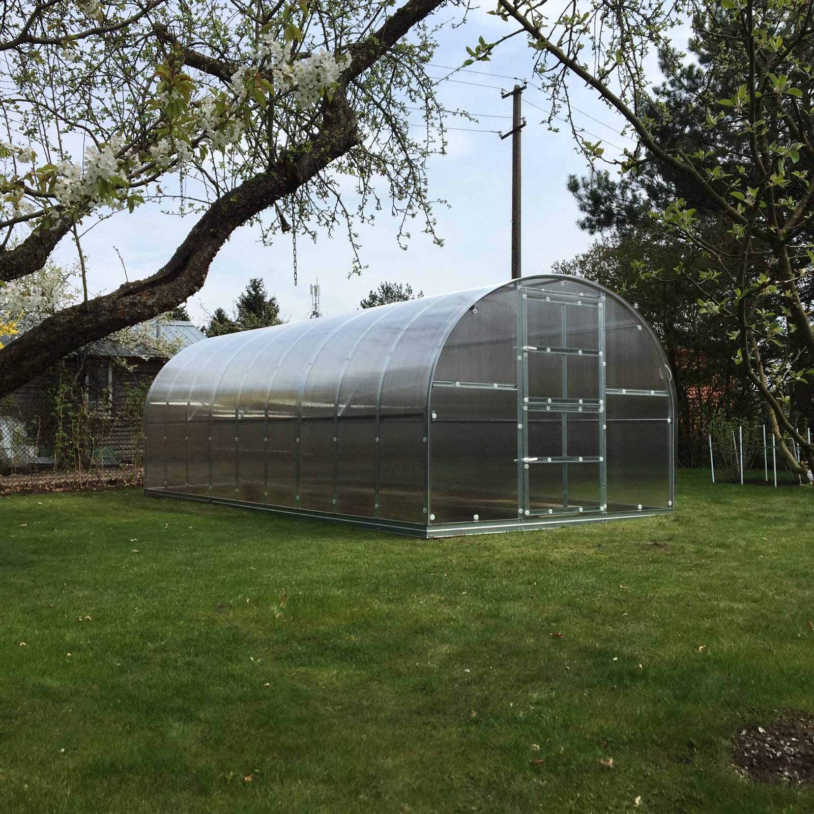 ✔️ Didelis atsparumas sniegui – žiemą sniegas neužsilaiko ant šiltnamio, o nuslysta žemyn, todėl šiltnamio nereikia išmontuoti šaltuoju sezonu.