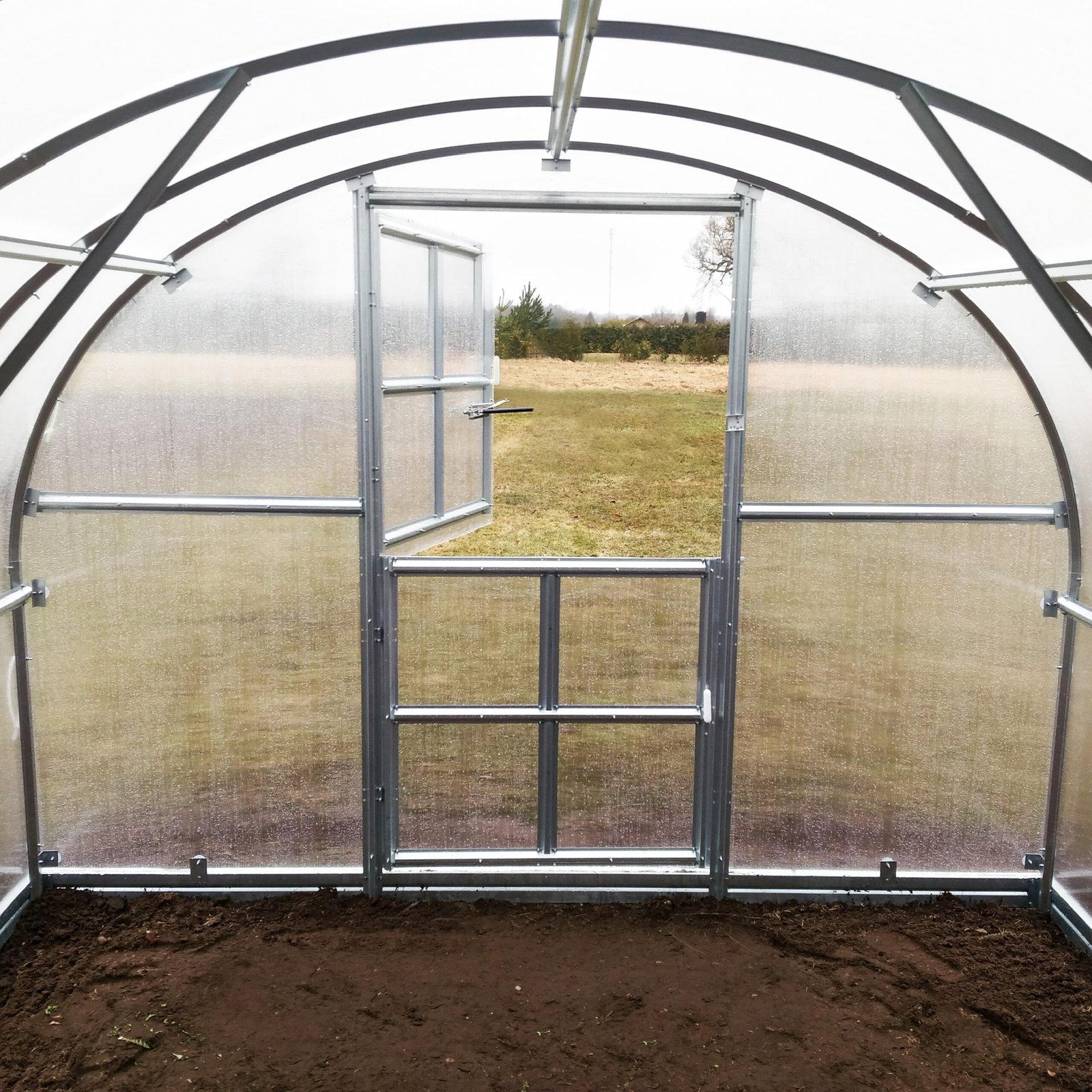 ✔️ Patogios dvigubos durys – abiejuose šiltnamio galuose esančios durys užtikrina gerą vėdinimą ir patogų patekimą į šiltnamį.