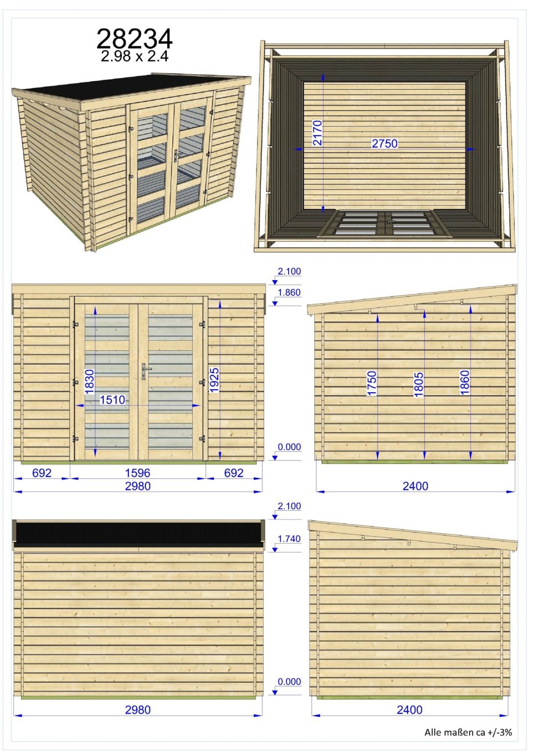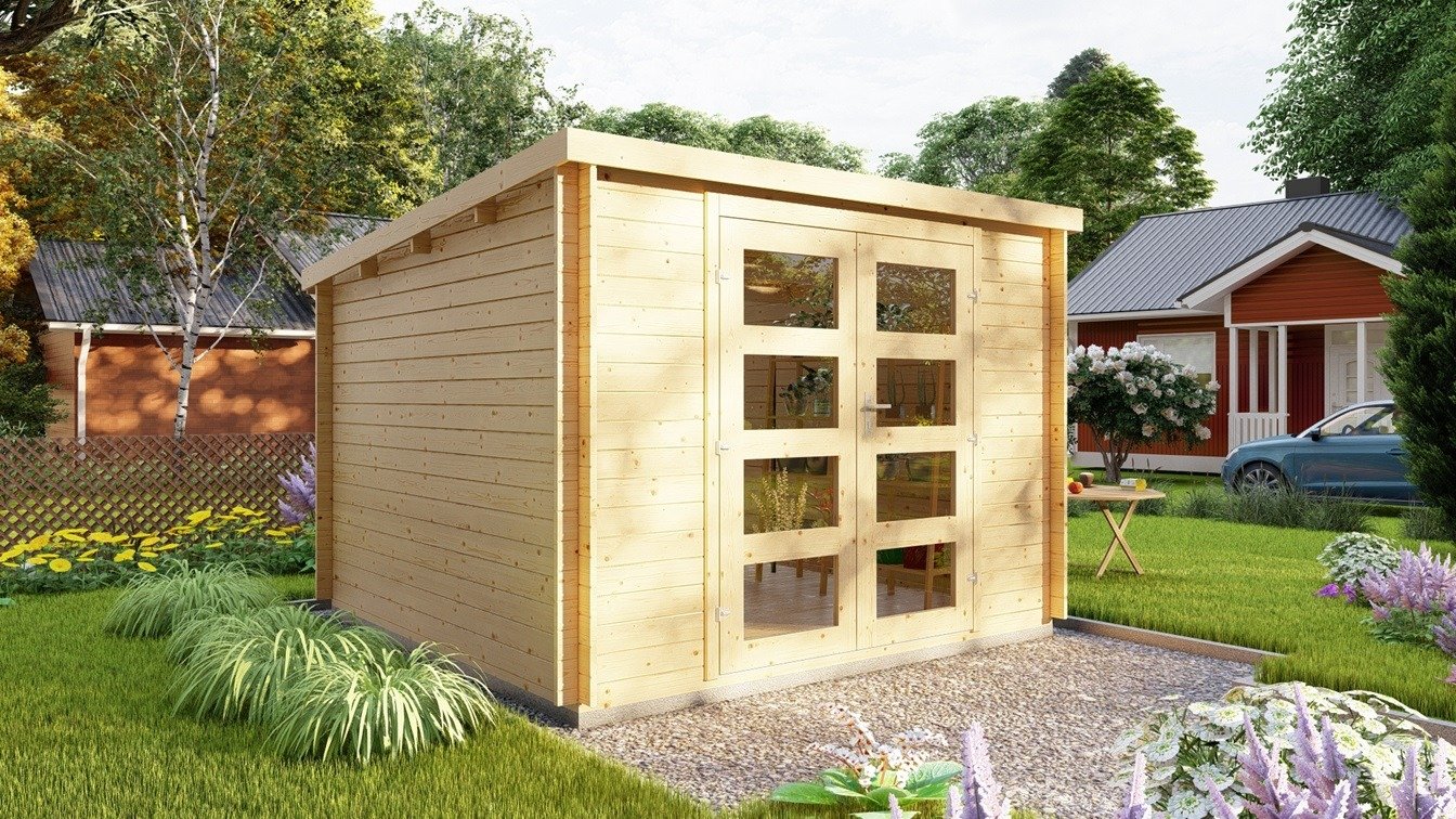 Medinis sodo namelis Harz – paprastas, bet itin kokybiškas statinys jūsų sodui. Šis pigus sodo namelis gaminamas Latvijoje, pagrinde prekiaujant Vokietijos rinkoje, esame vieninteliai atstovai Lietuvoje, tad nedelskite, bei būkite vieni pirmųjų įsigiję medinį sodo namelį! Šis medinis namelis tiks tiems, kurie ieško nebrangaus, bet patikimo ir išvaizdaus statinio. Surenkamas sodo namelis puikiai derės prie kiekvieno jau esančio statinio. Medinis sodo namelis gali būti naudojamas taip pat kaip sandėliavimo erdvė, jūsų namų ofisas ar studija. Didelės dvigubos durys leis sandėliuoti ir didesnių gabaritų daiktus. Grindys įsigijamos atskirai, kartu su jomis komplektuojamos impregnuotos pamato sijos, žiūrėti skiltyje Galimi priedai. Mediena atkeliauja nedažyta ir neimpregnuota. Šiaurietiška pušis ir tradicinė rąstinė konstrukcija tikrai nepaliks abejingų.