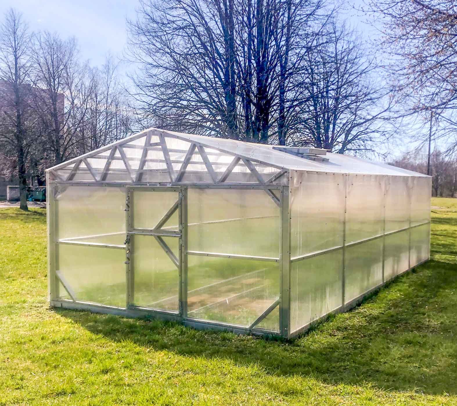 ✔️ Efektyvi ventiliacija – dvigubos durys su orlaidėmis abiejuose šiltnamio galuose.